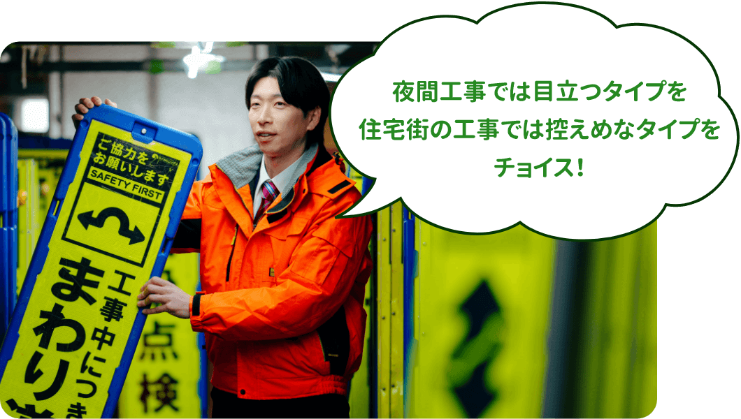 人や車の行き来が多い生活道路の規制では、安全への配慮が大切です。保安用品のレンタル・販売担当は、保安用品を用意するにあたり、工事内容や期間、周辺環境をふまえ、通行の妨げにならない数量や配置を考えます。