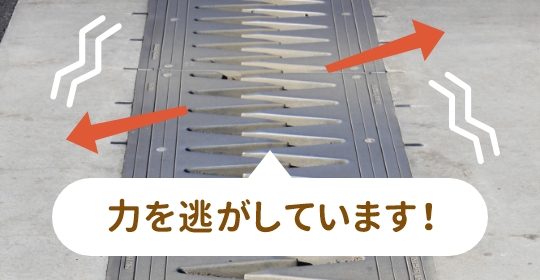 これは「伸縮装置」といいます。気温や車の重さによる伸び縮みから橋を守っているんです!
