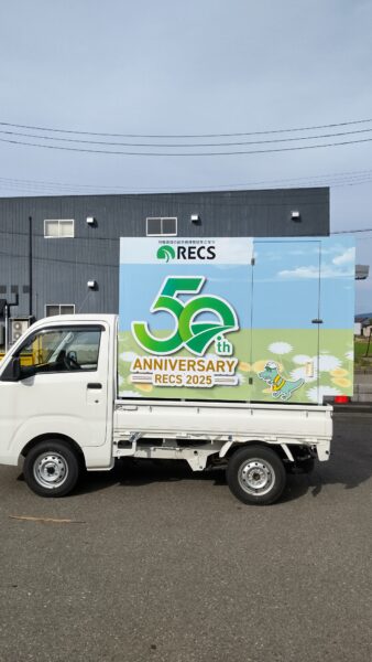 50周年のロゴマークを一面に載せたインパクトのあるイメージアップ車両です。